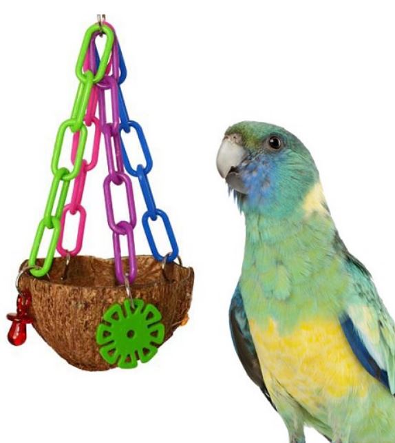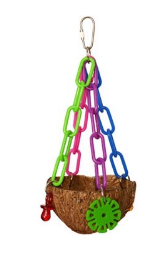 Coco Treat Cup and Bird Toy is great for small to medium-sized birds. Bird can enjoy swinging while eating out of the Coco Treat Cup.