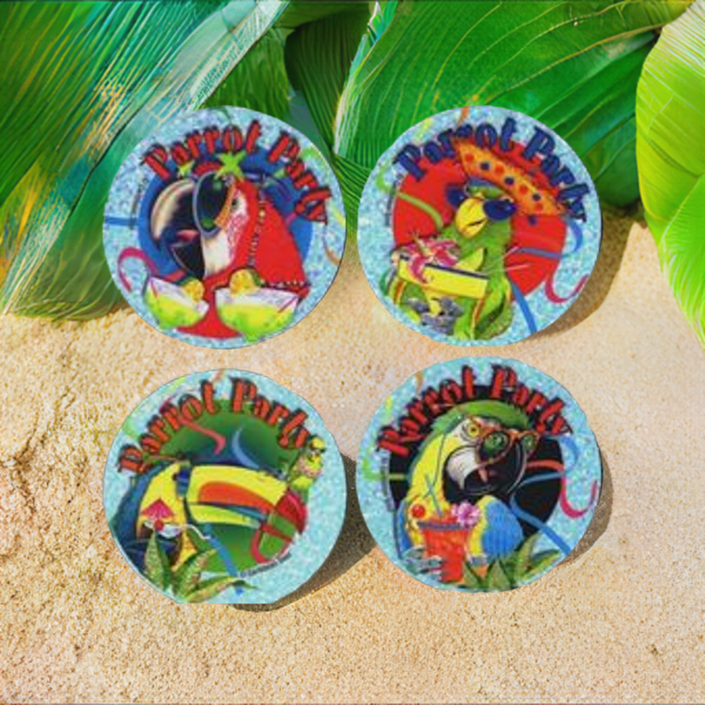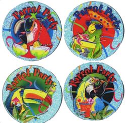 Set of 4 foam partying parrot coasters is sure to be a big hit at party time or as every day necessities. Great for home or patio areas.