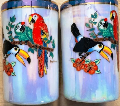 These pearlized parrot salt and pepper shakers are fun shakers.