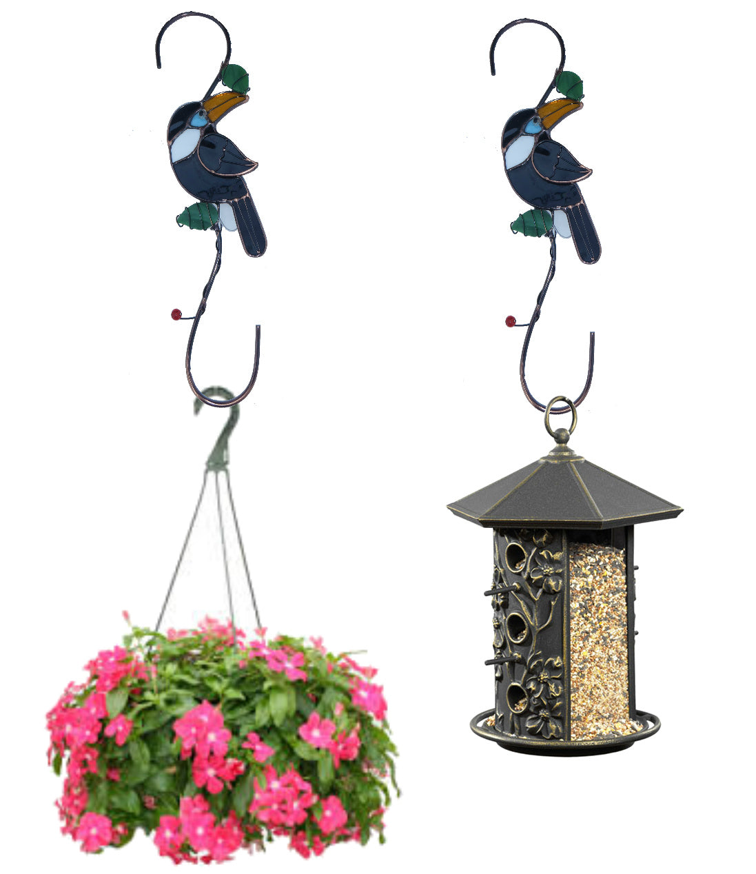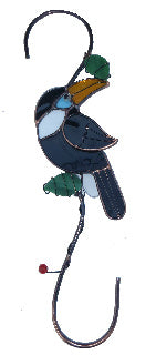 Stained glass inserts make this Toucan Parrot metal garden hook hanger a really nice accessory for your outdoor area.